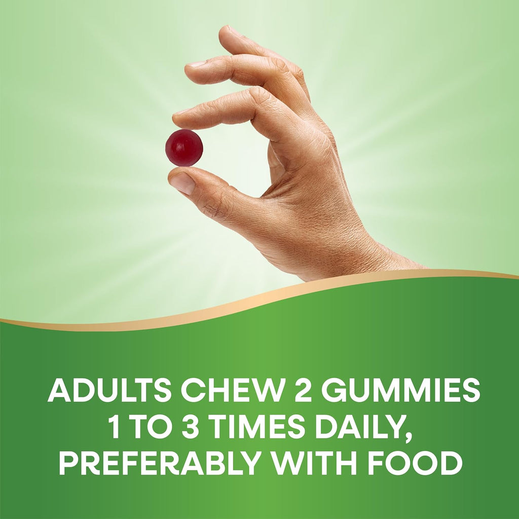 Adults chew 2 gummies one to three times daily, preferably with food.