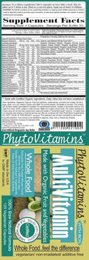Wholefood Multivitamin Plus Iron:The Vitamin and mineral combination of PhytoVitamins are derived from grains and seeds that are organically grown. The whole food ingredients are certified organic with no added fillers, binders or synthetic vitamins. These whole food ingredients have been prepared WITHOUT the use of rocks, shells, coral or any other non-food based ingredients. In addition this whole food multivitamin is rich in plant based antioxidants and live plant based enzymes that may help support your immune system and cleanse your blood. Take this whole food supplement to help boost your energy levels and to support a healthier lifestyle. Remember that this is a whole food supplement therefore has lower milligrams but a higher absorption rate than a synthetic form. It is also questionable whether or not your body should be absorbing a synthetic source. If you follow a good diet this is all the supplement you should need.