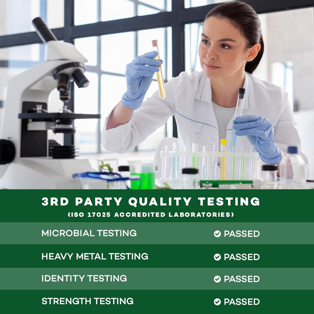 - SUPERIOR QUALITY – Manufactured in a USA GMP certified facility, with heavy metal, microbial, identity, and strength testing from a 3rd party ISO 17025 accredited laboratory.