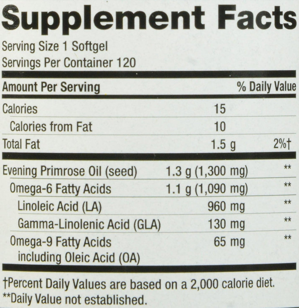 - Nature's Way Evening Primrose Cold Pressed Softgels, 1300 mg, 120 Count