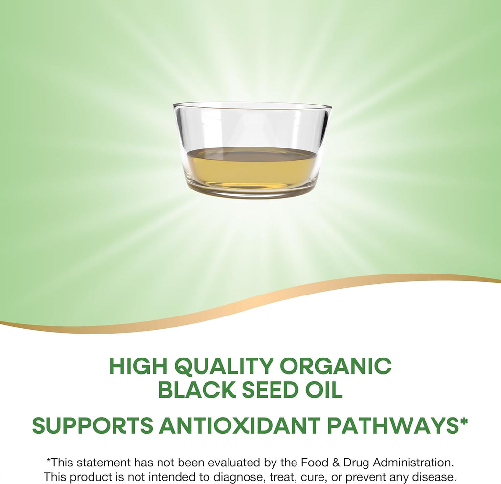 - Nature's Way Organic Black Seed Oil supports antioxidant pathways.* It's a unique blend of omega-6 and omega-9 with 0.60% naturally occurring thymoquinone, the key active compound in Black Seed Oil.
