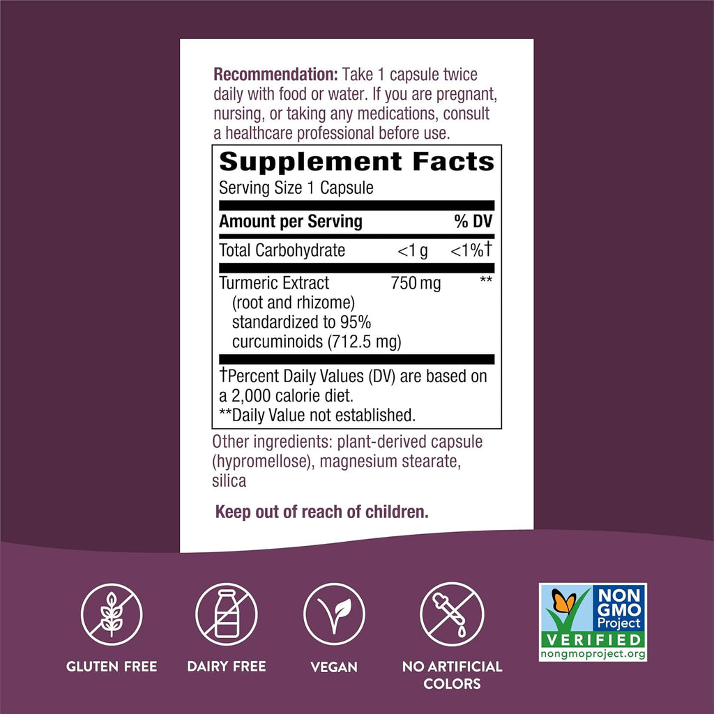 Turmeric Extract (root) standardized to 95% (712.5 mg)curcuminoids; Plant-Derived Capsule (Hypromellose); Magnesium Stearate; Silica