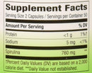 Spirulina (760 mg). Encapsulated Spirulina grown in environmentally controlled cement ponds specially constructed for this purpose. Gelatin
