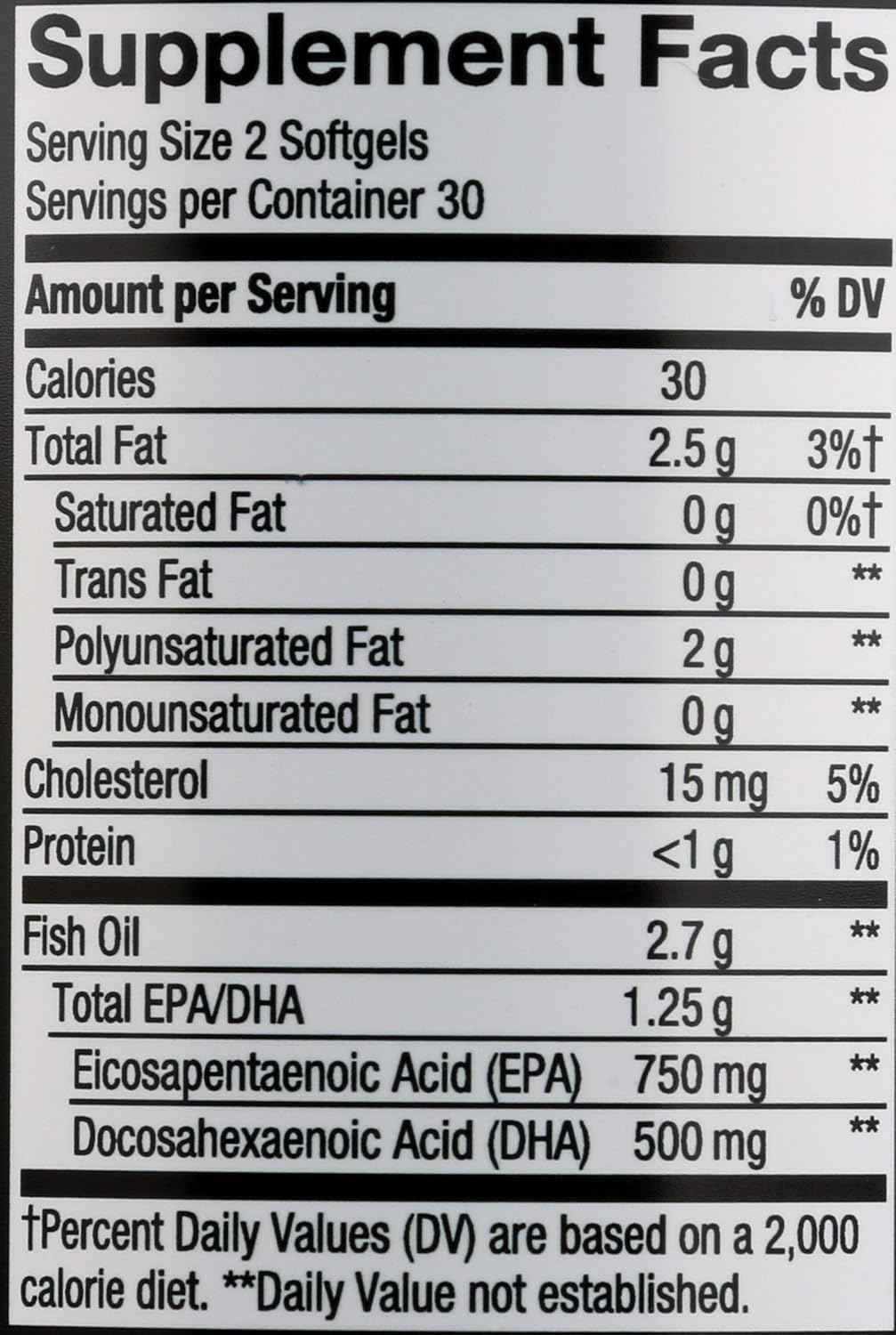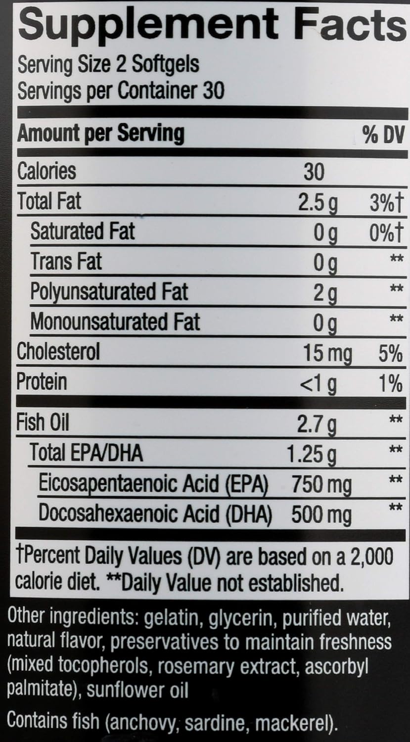 Fish Oil; Total EPA/DHA; Eicosapentaenoic Acid (EPA); Docosahexaenoic Acid (DHA); Gelatin; Glycerin; Purified Water; Natural Flavor; Preservatives To Maintain Freshness (Mixed Tocopherols; Rosemary Extract; Ascorbyl Palmitate); Sunflower Oil