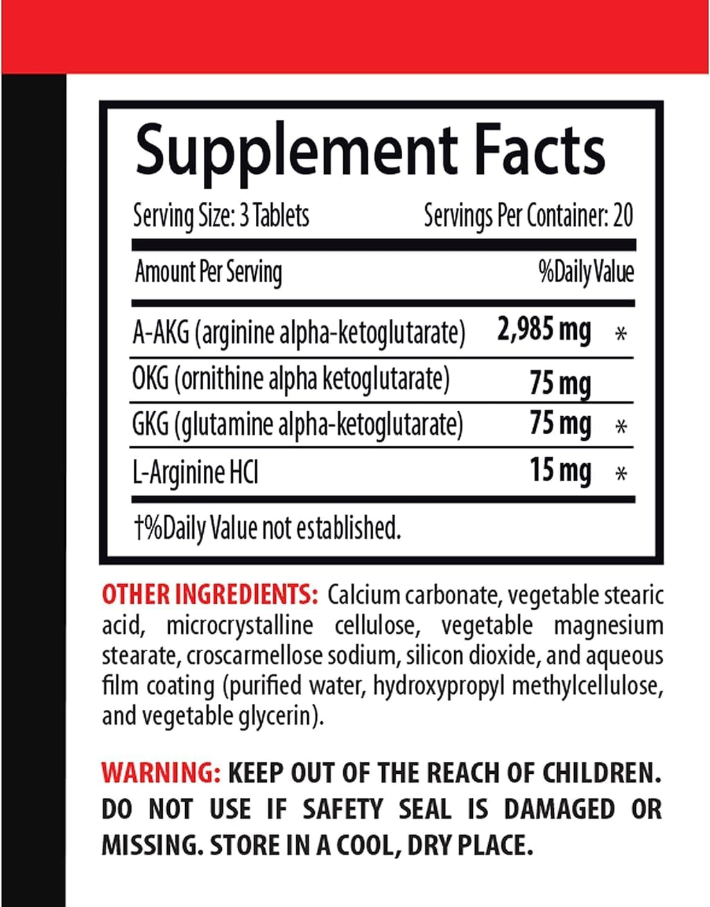 - Special Ingredients: L-Arginine, A-AKG (arginine alpha-ketoglutarate), OKG (ornithine alpha-ketoglutarate), GKG (glutamine alpha-ketoglutarate) See more