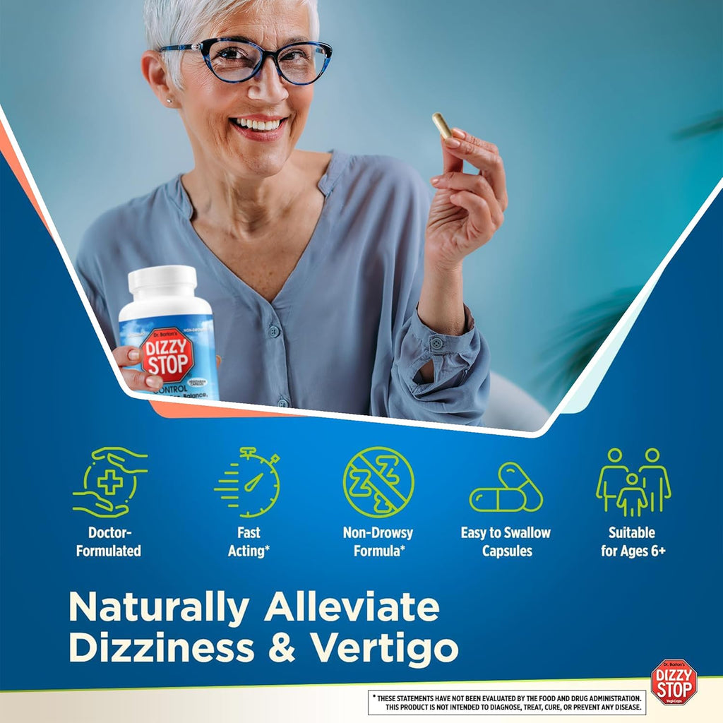 - NON-DROWSY VERTIGO ASSISTANCE: Dizzy Stop is your non drowsy motion sickness and vertigo companion. Whether it’s room-spinning dizziness, fishing trips, or casual dinners with your loves ones, now you can enjoy life again without feeling tired and uneasy. Quickly alleviate vertigo and achieve inner ear balance without feeling sidelined.