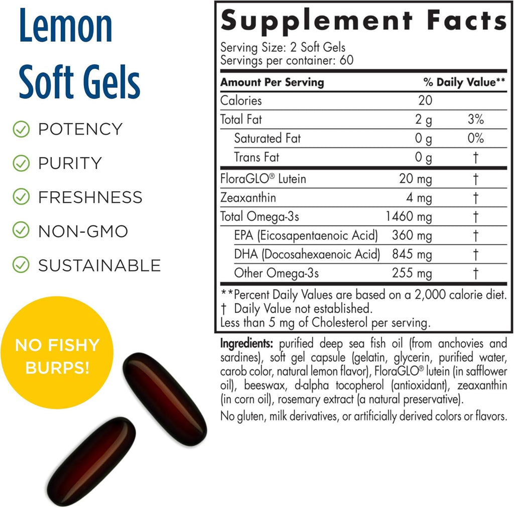 - 90+% triglyceride form DHA and EPA from fish oil plus condition-specific nutrients