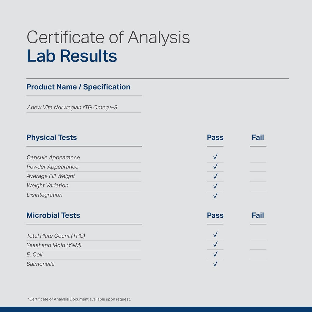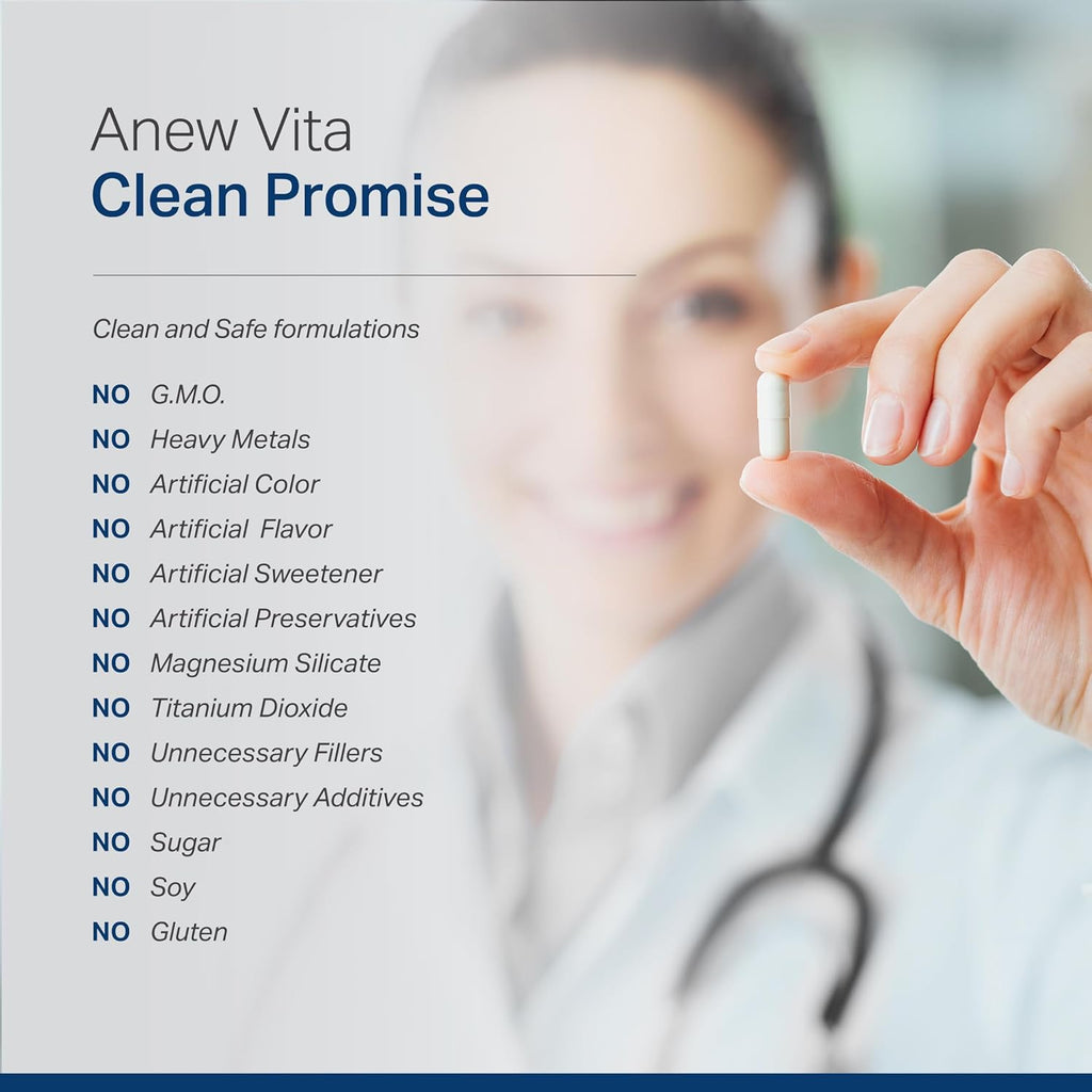 - ANEW VITA'S RESEARCH ETHOS: Science doesn't compromise, neither do we. Anew Vita's Omega-3s, encapsulated within the scientifically revered Epax fish oil, undergo rigorous quality checks in cGMP certified facilities, consistently exceeding globally acclaimed standards, including Ph. Eur., USP, and Prop 65.