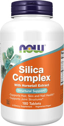 With Horsetail ExtractSupports Hair, Skin and Nail Health*Supports Joint Structures*Silica is a naturally occurring element necessary for the production of collagen and glycosaminoglycan, two structural compounds important for the health of skin and joints.* It is also an important component of hair and nail health.* NOW Silica Complex is a unique blend of nutrients that support the health of skin, hair, and nails, structural features essential to natural beauty, along with the integrity of joints and bones.*Natural color variation may occur in this product.