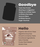• Enhanced Digestion and Delightful Taste: Infused with vegan clinically tested digestive enzymes and naturally sweetened with lucuma superfood for a smooth and creamy taste. Say goodbye to bloating, indigestion, chalky taste, and artificial aftertaste. NUFYX is the answer - made from organic USA-grown peas.