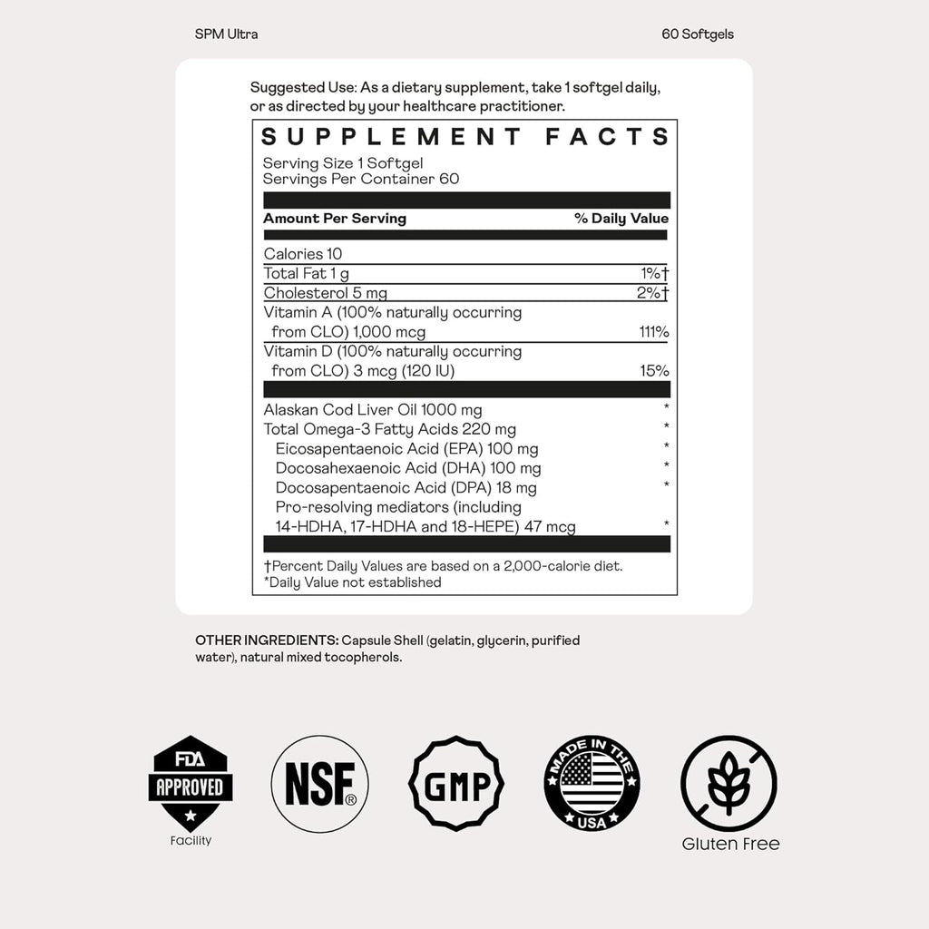 - Pro-resolving mediators: enriched with SPM Ultra, a pro-resolving mediator, which aids in resolving the natural response of your body to inflammation, promoting joint health.
