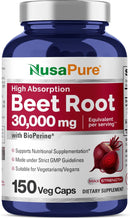 - High Absorption Beet Root 30,000mg equivalent per serving. Bioperine. Extract 30:1