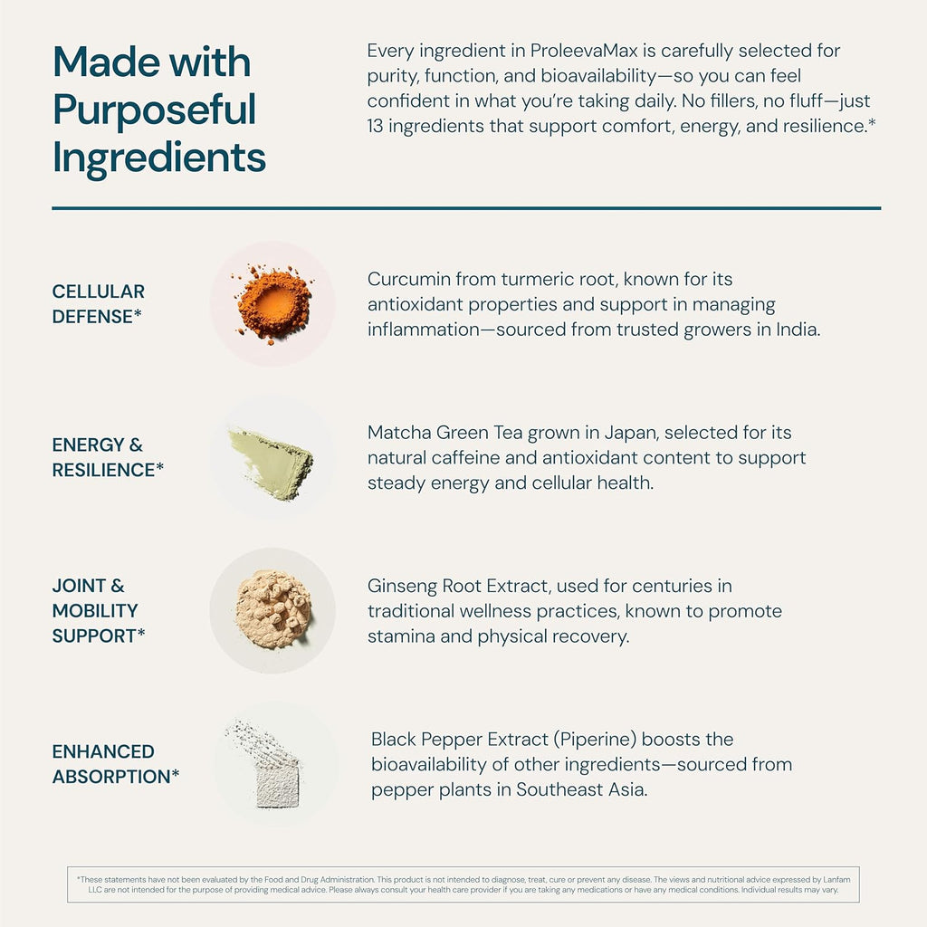 - NATURAL INGREDIENTS: ProleevaMax capsules are packed with a curated blend of natural active ingredients including curcumin, l-arginine, resveratrol, ginseng root powder, 5-HTP, japanese knotweed, and boswellia extract.