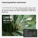 - 3000 mg of Mullein Leaf - This powerful plant is used globally to promote respiratory system health & clear breathing. Our high potency 10:1 extract delivers excellent results in helping the body loosen and expel excessive mucus.