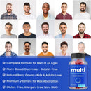 - Convenient Gummies - Our mens multivitamin gummies are practical, easy-to-consume & incredibly effective. Gummies aren’t just for kids! Adults can now roll back the years and start enjoying consuming their vital vitamins!