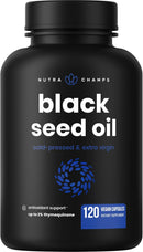 - 120 Vegan Capsules of 100% Organic, Cold-Pressed Black Seed Oil. Loaded with 1400mg of pure, extra virgin oil rich in Omega 3 6 9 and immune boosting nutrients Thymoquinone, Thymol, and Nigellone. Score a 60 day supply (per bottle) today!
