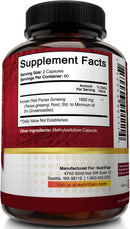 Korean Red Panax Ginseng (Panax ginseng; Root; Std. to Minimum of 5% Ginsenosides) - 1600 mg. Vegetarian Capsule (Non GMO Plant Cellulose)