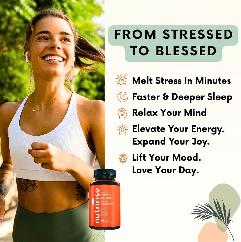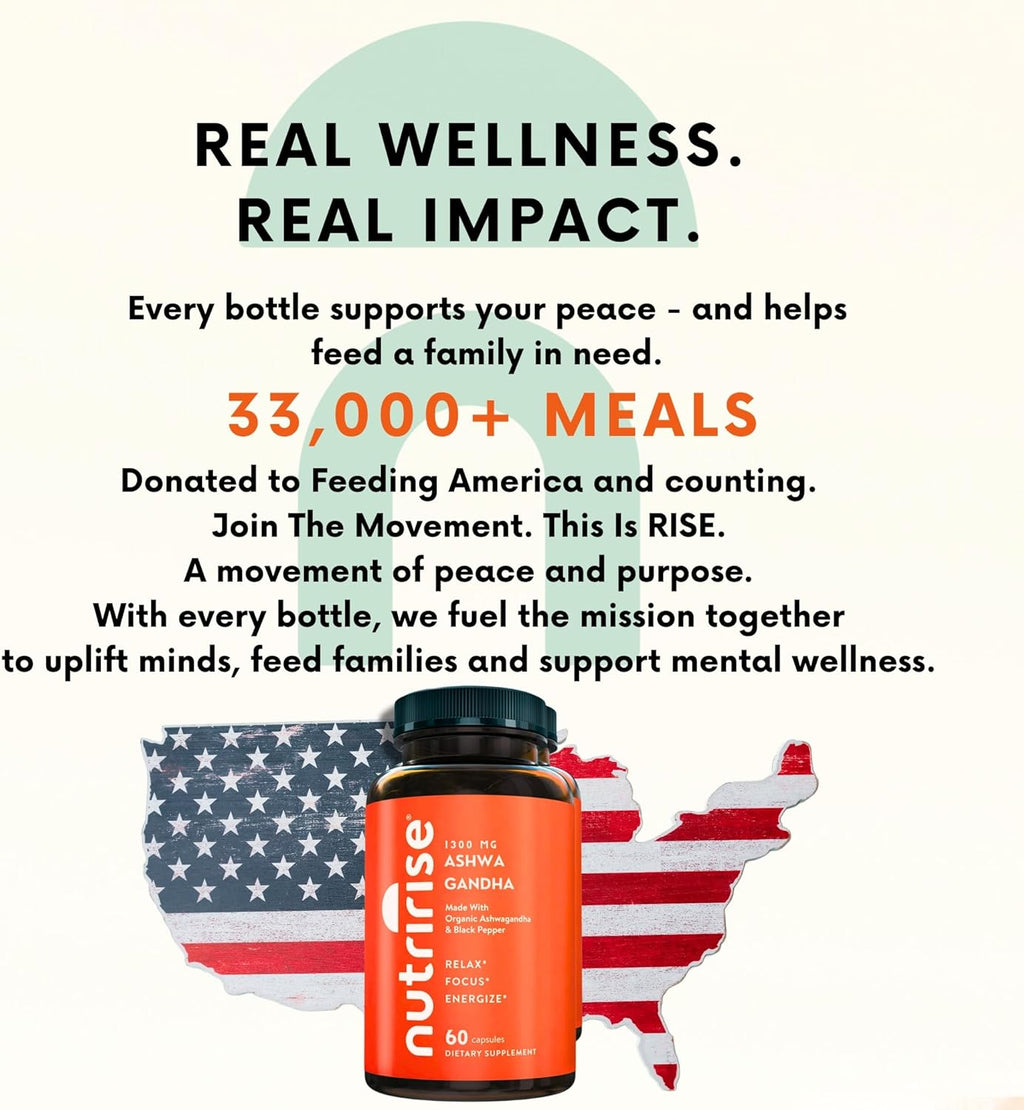 Discover the Ultimate Ashwagandha Experience – Where Timeless Wisdom Meets Modern Science Transform your wellness journey with NutriRise Organic Ashwagandha, a premium supplement meticulously crafted to deliver the most powerful and effective results. With 1300mg of pure, organic ashwagandha root powder and enhanced with organic black pepper for superior absorption, our formula ensures you experience profound benefits that go beyond the ordinary.* Experience Natural Stress Release & Emotional Balance: In a world of constant stress and overwhelming demands, find your center. Ashwagandha is renowned for its adaptogenic properties, helping you maintain calmness, resilience, and emotional well-being. Embrace a more balanced, composed version of yourself, ready to face daily challenges with confidence and ease.* Unlock Mental Clarity & Enhanced Focus: Stay sharp and clear-minded with the cognitive-supporting power of ashwagandha. Designed to enhance memory, concentration, and overall cognitive performance, our formula helps you thrive under pressure and maintain peak performance throughout the day.* Revitalize Your Hormones & Boost Your Vitality: Experience harmonious energy and metabolic wellness. Ashwagandha supports healthy hormonal function, promoting vitality and resilience. Ideal for those seeking enhanced energy levels and well-being, whether at work, the gym, or home.* Sleep Soundly & Wake Up Rejuvenated: Enjoy deep, restorative sleep that empowers your body to recover and recharge. Our advanced formula supports your natural sleep cycle, ensuring you awaken feeling refreshed, energized, and ready to live your best life.* Strengthen Immunity & Enhance Overall Wellness: Fortify your natural defenses with one of nature’s most powerful adaptogens. Ashwagandha’s renowned immune-supporting benefits help you stay resilient and vibrant every day.* Purity You Can Trust: At NutriRise, we are dedicated to delivering the highest quality supplements. Our organic ashwagandha is sourced exclusively from certified farms in India, crafted from 100% root extract for superior potency. Free from fillers, GMOs, and artificial additives — purity and potency for highest efficacy. Embrace the Power of Ashwagandha – Order Your NutriRise Ashwagandha Today! *These statements have not been evaluated by the Food and Drug Administration. This product is not intended to diagnose, treat, cure, or prevent any health conditions.