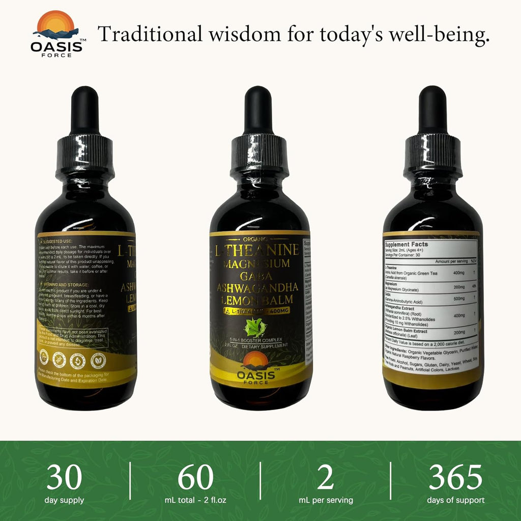 - 【L Theanine Liquid Drops】Our L-Theanine is extracted from high-quality organic green tea, delivering 400 mg per serving. Synergistically combined with GABA, magnesium glycinate, organic ashwagandha, and lemon balm, this formulation is designed to assist in maintaining emotional balance, cognitive sharpness, and sleep quality.