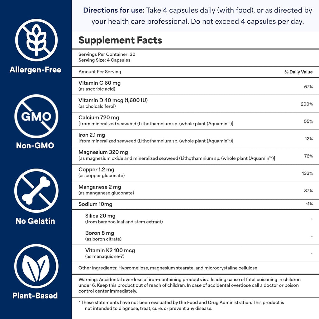 - Daily Calcium Supplement for an Active Life: Each bottle contains 120 easy-to-swallow veggie capsules, providing a full 30-day supply. Simply take 4 capsules daily with meals to support optimal bone health. Our premium bone health formula provides a convenient solution for bone density support and fits seamlessly into your busy lifestyle, whether you're at home or on the go.