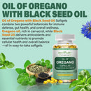 - POWERFUL IMMUNE SUPPORT: Our Oil of Oregano with Black Seed Oil Softgels combine two of nature's most potent ingredients, offering a powerful blend of Carvacrol, Thymoquinone, and essential fatty acids. These Oil of Oregano with Black Seed Oil Softgel Capsules deliver exceptional antioxidant and anti-inflammatory benefits, helping to strengthen your immune system, support respiratory health, and improve overall wellness. Designed to promote gut health, boost energy, this unique formula is the ideal daily supplement for a healthier, more vibrant you.