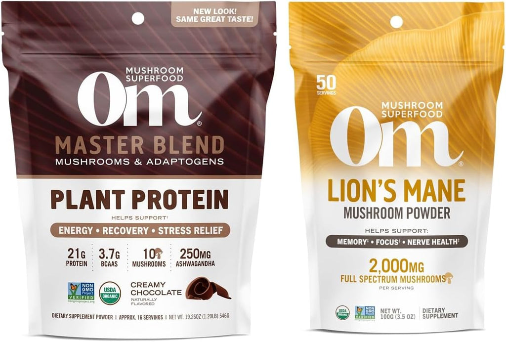 - Contains: Master Blend Plant-Based Protein Powder, Creamy Chocolate and Lion’s Mane Organic Mushroom Powder