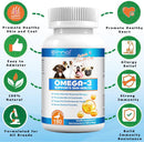 - Itch & Allergy Relief with Omega-3 for Dogs - Great Tasting 800mg per tablet of Omega 3 fish oil for Dogs - These chewable supplement tables help with hot spots, dry itchy skin, ease itching, irritated skin, stops shedding. Support healthy hip and joints, brain, heart, immune health. Allergy Relief and Hip & Joint Health Combined