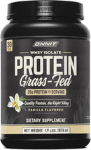 - Quality Protein the Right Whey: One 30.7 oz tub of ONNIT Grass Fed Whey Isolate Vanilla Flavored Protein Powder with 30 servings per tub