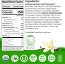 - CLEANER INGREDIENTS: 21g of Organic plant based protein and <1g sugar. Our protein blend contains Organic peas, brown rice, mung bean, & chia seeds with all 9 essential amino acids. Each serving features 4g of prebiotic + fiber* for gut support.
