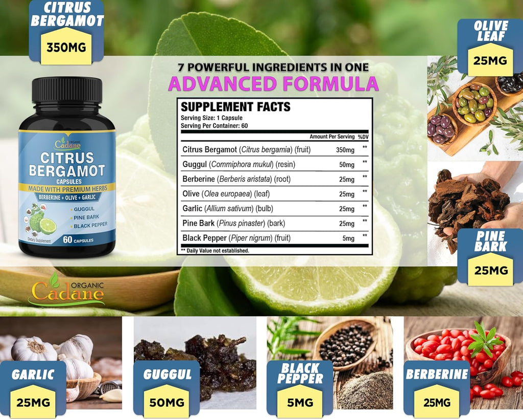 - ❤️ Advanced Herbal Formula for Maximum Benefits: Experience the powerful blend of Citrus Bergamot, Berberine, Olive leaf, Garlic, Pine Bark, Guggul, and Black Pepper, our premium citrus bergamot supplement supports balance & body management, maintains a healthy figure, promotes heart health and enhances overall well-being.