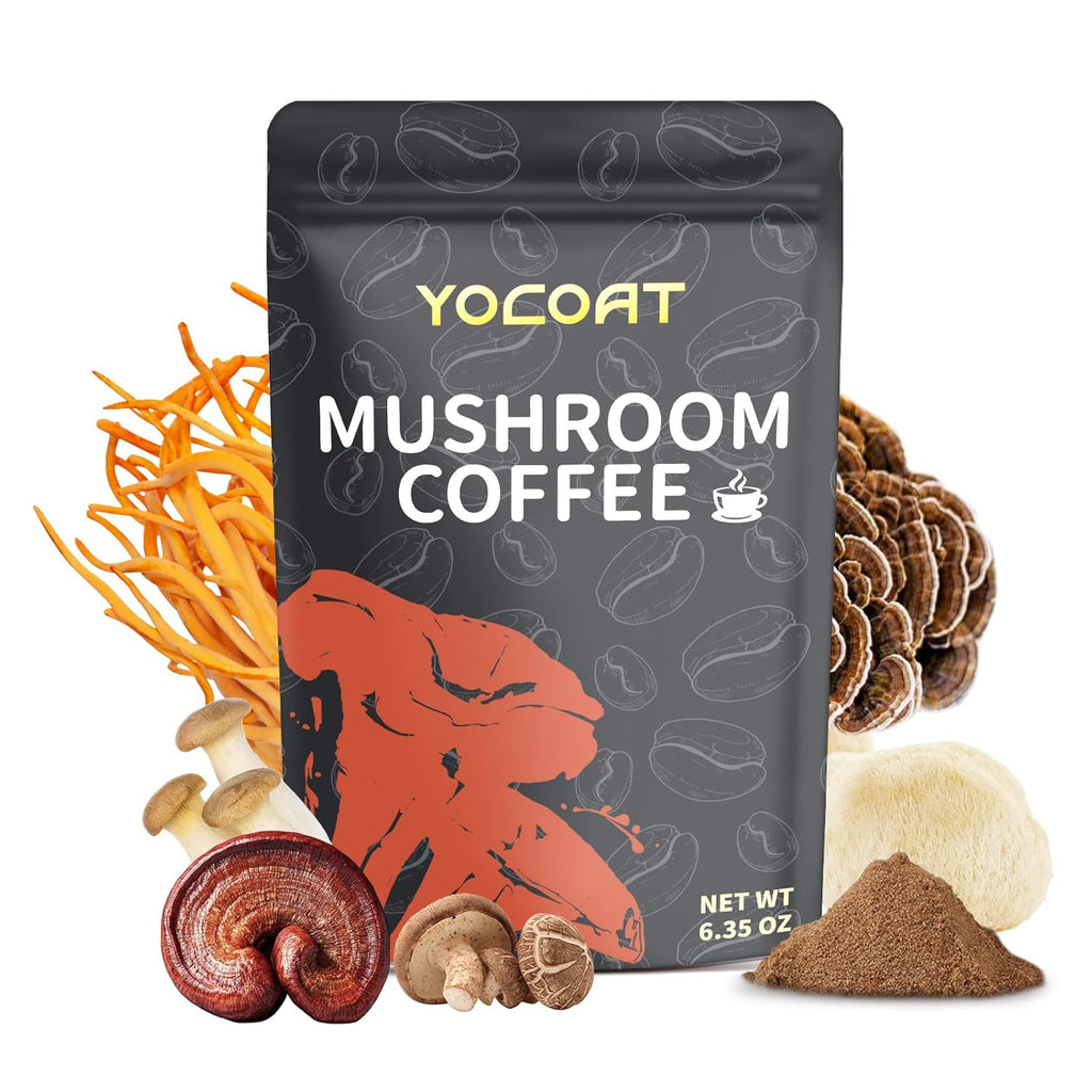YOCOAT Organic Mushroom Blend (Cordyceps, Reishi, King Trumpet, Shiitake, Turkey Tail, Lion's Mane). Arabica Coffee (48mg of caffeine). MCT Oil. Coconut Milk