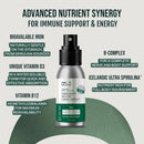 - IMMUNE BOOST + ENERGY IN A BOTTLE: Support normal immune system response, stamina and energy levels with Ultra Spirulina, B vitamin complex, and a water-soluble vitamin D3. Our plant-based immune support supplement is made using 100% renewable resources with 0% of the stuff you don't want. It comes in a compact spray bottle that you can store in your handbag or with your travel essentials.