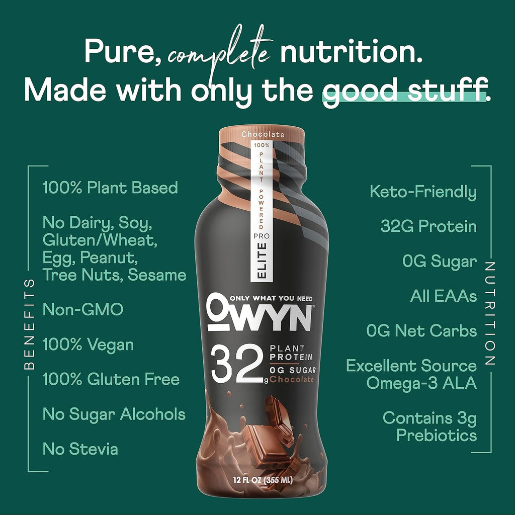 - PROVIDES ONLY WHAT YOU NEED: Great source of fiber, high vegan omega-3, and a super greens blend of kale, spinach, and broccoli. OWYN Elite shakes also include prebiotic supplements to support gut health and digestion.
