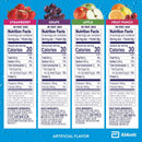 Fruit Punch (Anhydrous Dextrose, Citric Acid, Malic Acid, Potassium Citrate, Salt, Sodium Citrate; Less than 2% of: Natural & Artificial Flavor, Calcium Silicate, Sucralose, Acesulfame Potassium, Red 40), Grape (Anhydrous Dextrose, Citric Acid, Malic Acid, Potassium Citrate, Salt, Sodium Citrate; Less than 2% of: Natural & Artificial Flavor, Calcium Silicate, Sucralose, Acesulfame Potassium, Red 40, Blue 1), Apple (Anhydrous Dextrose, Citric Acid, Malic Acid, Potassium Citrate, Salt, Sodium Citrate; Less than 2% of: Artificial Flavor, Calcium Silicate, Caramel Color, Sucralose, Acesulfame Potassium), and Strawberry (Anhydrous Dextrose, Citric Acid, Malic Acid, Potassium Citrate, Salt, Sodium Citrate, Natural Flavor; Less than 2% of: Calcium Silicate, Sucralose, Acesulfame Potassium, Red 40, Blue 1).