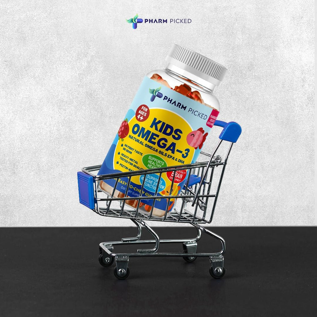| Specific Uses For Product | Pharm Picked Omega-3 Gummies, Natural Omega Oils EPA & DHA, Omega for kids 4 years and older, Heart, brain, and immune support gummies for kids See more |