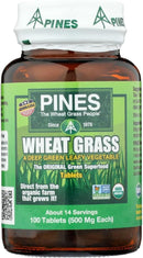 PINES Wheat Grass is a food with such a naturally high concentration of nutrients that just seven tablets are equal to a large serving of a deep green leafy vegetable. It's a naturally balanced source of vitamins, minerals, amino acids, dietary fiber, chlorophyll, and carotenoids. It is nitrogen-packed in an amber glass bottle to ensure freshness.* ... PINES Wheat Grass. It’s real, it’s natural, and it’s certified organic — a whole food that’s been harvested at the absolute peak of its nutritional value. Think of it as concentrated "solar energy," or simply as an off-the-shelf source of the very best that greens have to offer. Either way, it’s good nutrition made simple: the vitamins and minerals your body needs, in the form your body was designed to use — without all of the additives and artificial ingredients you’ve been hoping to avoid!*