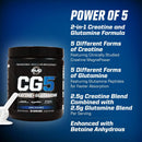 - Powerful Strength: CG5 features a blend of 5 different forms of Creatine, and is specifically formulated without creatine monohydrate. It does, however, include clinically studied Creatine MagnaPower, an advanced form of creatine that binds creatine to magnesium, making it less susceptible to breakdown in the stomach. By including MagnaPower, CG5 helps to maximize overall creatine uptake into the body.