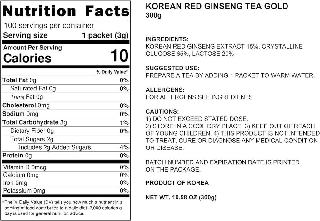 - Ingredient: Korean 6 Years Red Ginseng Extract 15% (Origin Korea, Rg1+Rb1+Rg3=6.7mg/g), crystalline glucose 65%, lactose 20%