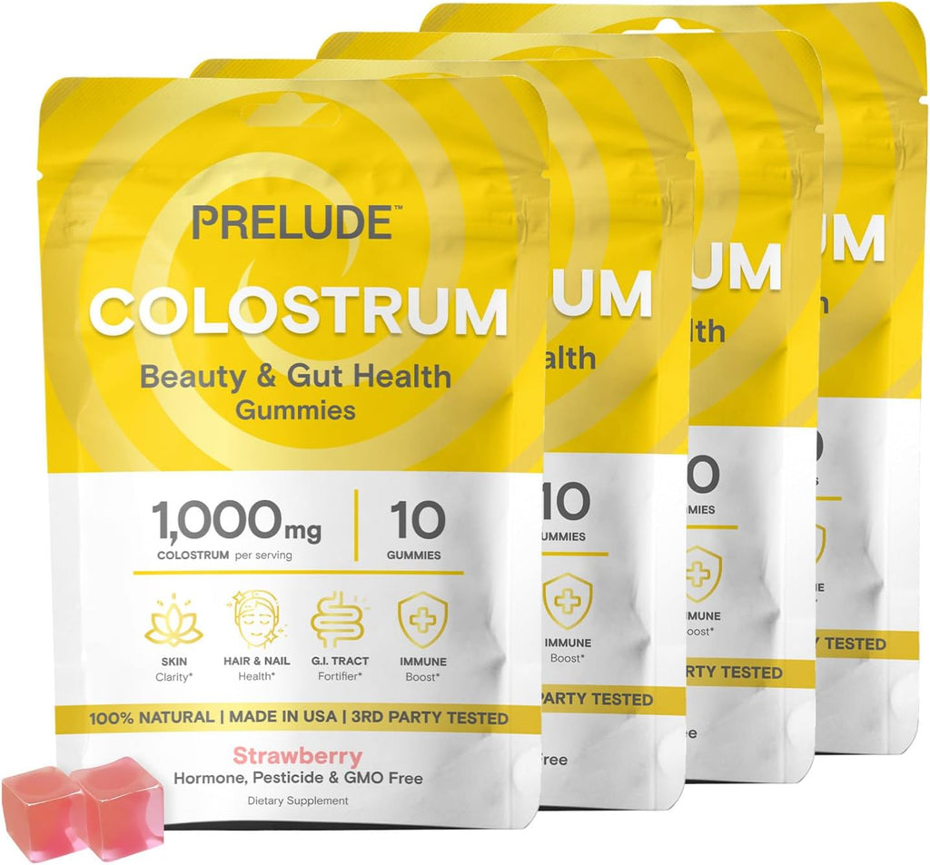- Prelude Bovine Colostrum Chews for Gut Health, Bloating & Beauty for Women & Men - Grassfed Colostrum Gummies for Digestive Health Immunity & Overall Wellness - 10 count Strawberry Milkshake 4pk