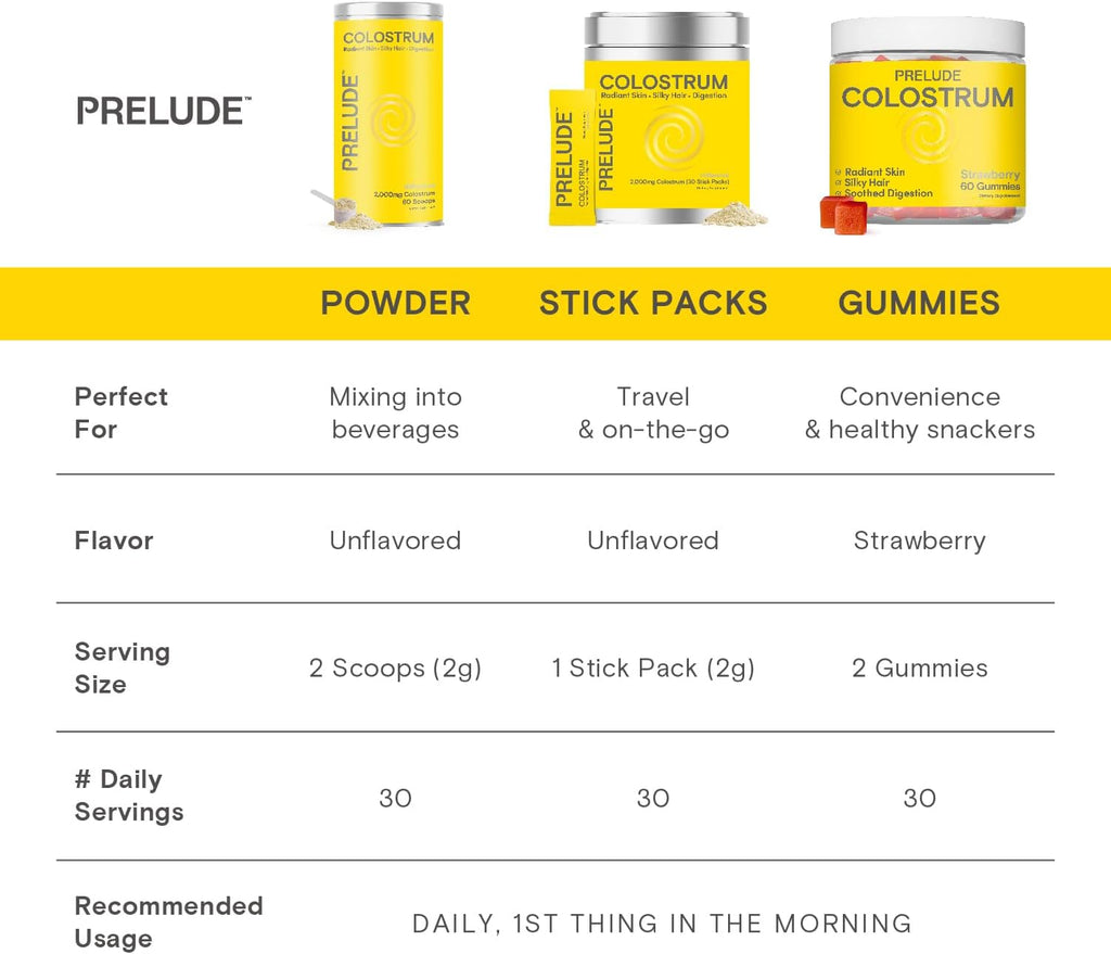 - PURE COLOSTRUM FROM FIRST MILK - Each serving provides 1000mg of pure grassfed colostrum bovine with immunoglobulins. Free from soy, gluten, hormones, and non-GMO.