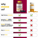 - Berberine Extract, 400 mg Equivalent to 1200 mg Raw Berberine content packed in 120 capsules, True Ceylon Cinnamon 100 mg,Black Pepper, Mace & Ashwagandha increase the bioavailability of berberine & Higher Absorption enhancing metabolic function.