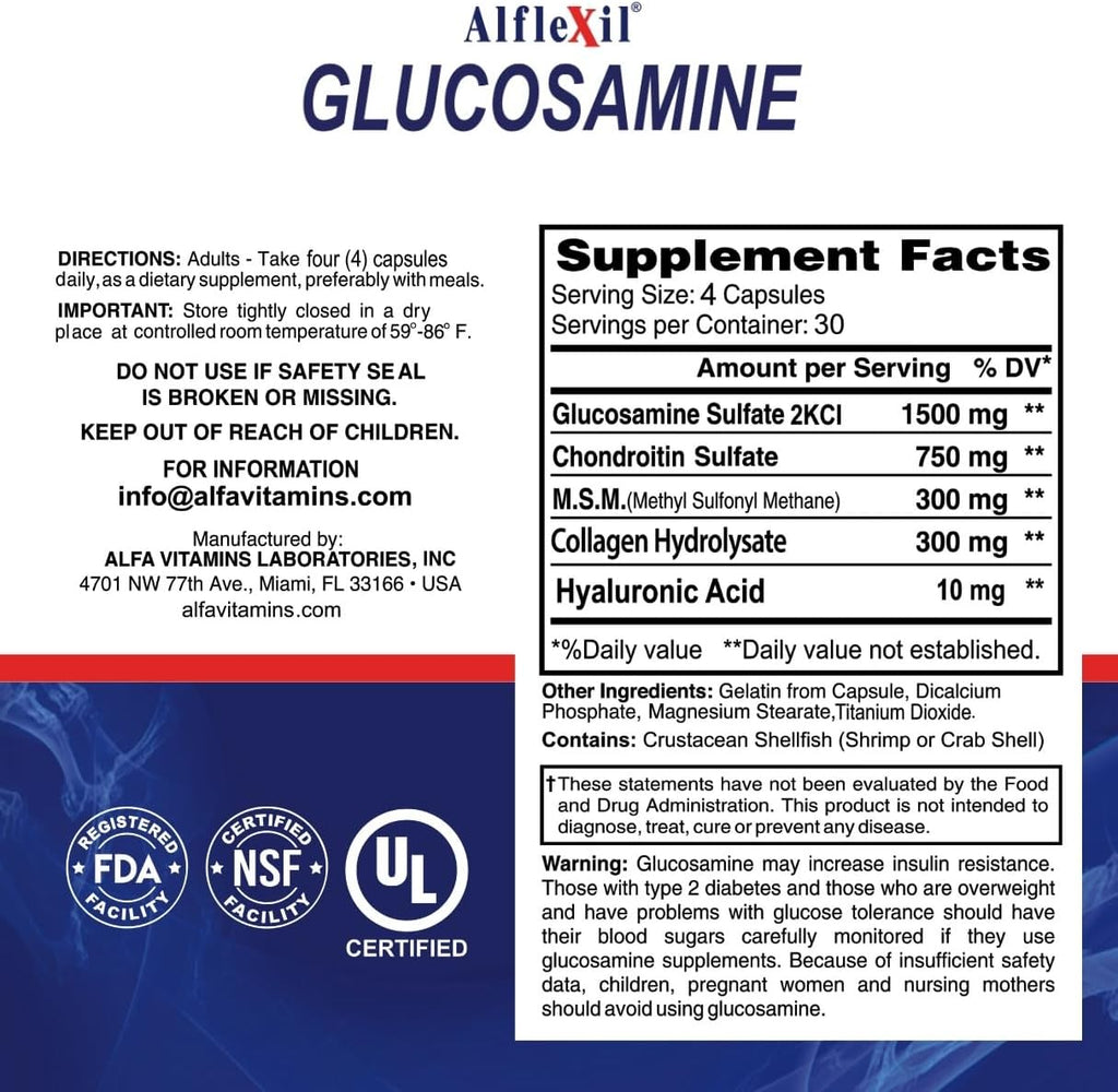- ORDER IT NOW, RISK FREE! - At Alfa Vitamins, we stand 100% behind our Alflexil glucosamine & chondroitin supplements. After all, some of us use them ourselves! If, however, the supplement you receive doesn't live up to your expectations, don't hesitate to contact us and benefit from our money back guarantee policy!