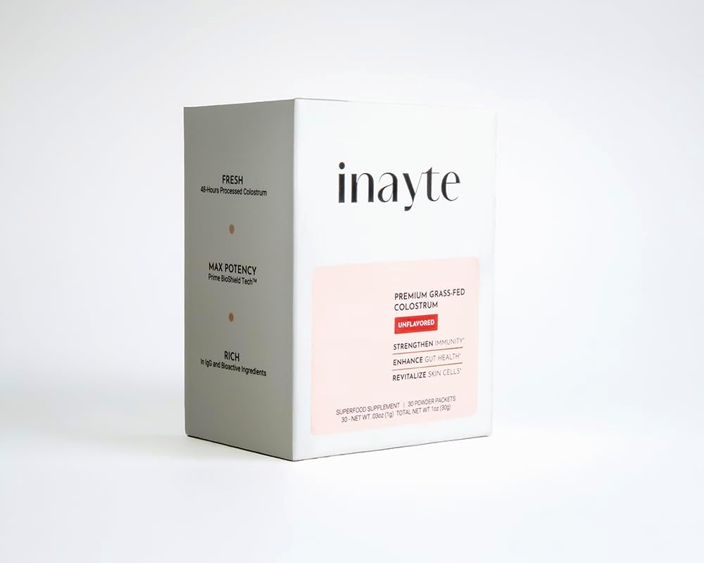 Unlock the power of nature with Inayte Premium Grass-Fed Colostrum, a potent superfood supplement designed to support your immune system, gut health, and overall vitality. Sourced from 100% grass-fed cows, our colostrum features Prime BioShield Tech with growth factors and bioactive ingredients to help you feel your best every day.