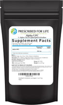 - PREMIUM BULK NUTRITION: Prescribed for Life offer sizes from 56 g to 25 kg (55 lbs) for all your bulk memory supplement needs. Our Alpha GPC choline powder is packaged in the USA in accordance with GMP guidelines.