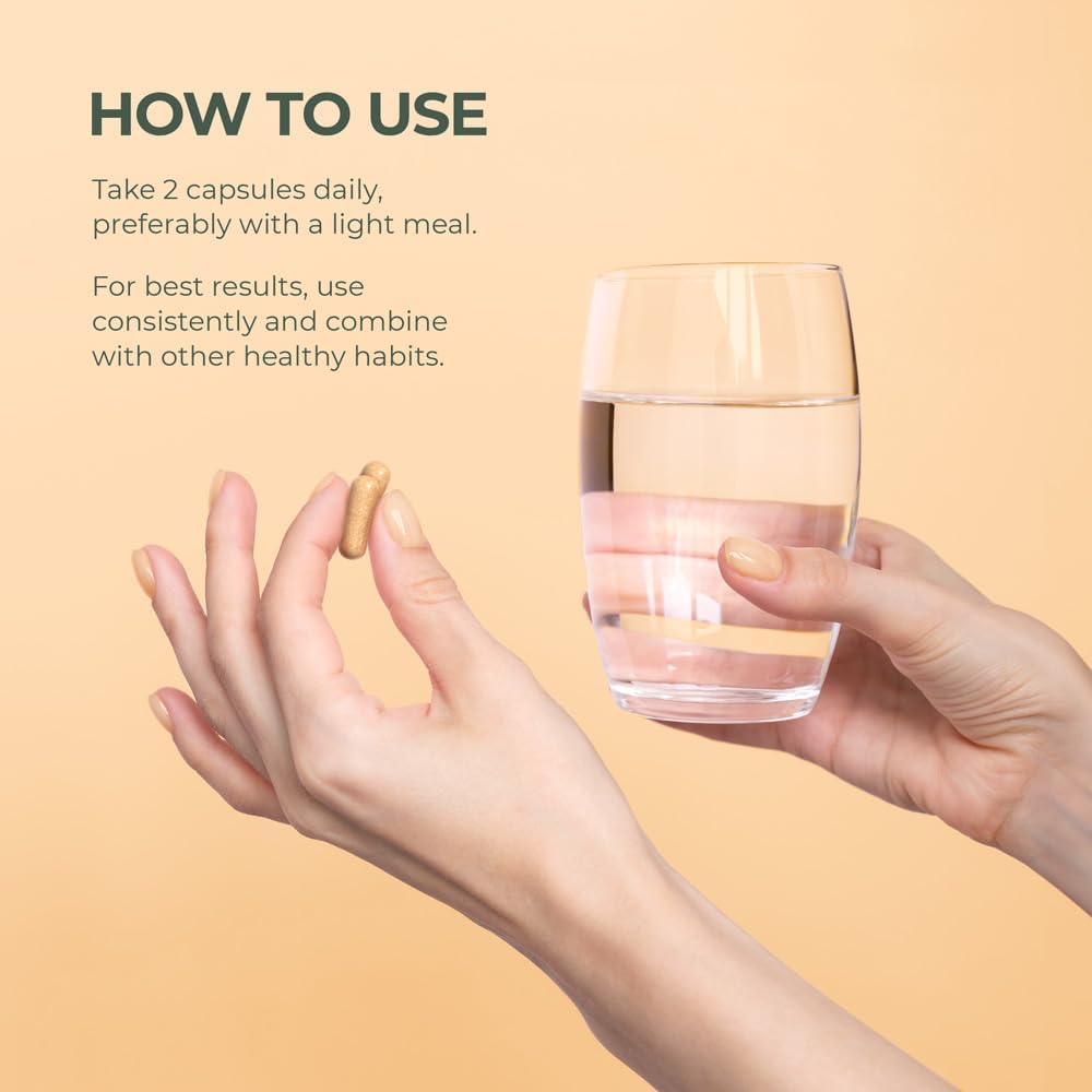 - Recommended Dosage: Take 2 capsules daily, preferably with a light meal or as advised by a healthcare professional, combine with balanced meals, exercise, water and plenty of rest