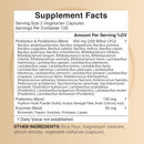 - Each serving delivers 40 strains that contain 450mg of probiotics and postbiotics, 150mg of prebiotics, and 50mg of enzymes.