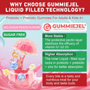 - (Made In USA)10 X Higher Probiotic Survival Rate: Our probiotic gummies featured a chewy outer layer and a natural peach-flavored filling. The inner Liquid-filled layer locks in prebiotic and probiotic, while the protective pectin layer stabilizes and preserves their efficacy. This dual-layer approach enhances absorption, giving you the vibrant energy and vitality. GUMMIEJEL technology ensures that 98% of the probiotic bacteria reach the intestine alive, compared to an average of 7% on the market.