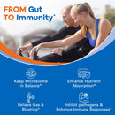 - From Gut to Immunity*: 70% of your immune system lies in your gut. Nourishing your microbiome with probiotics can greatly support your immune system.* This 3-in-1 complex is specially formulated to boost friendly probiotics, keep gut flora in balance, aid in stomach discomfort & bowel movements, maintain the integrity of the lining of intestine walls, ease leaky gut, and enhance immune responses.*