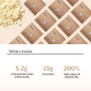 - What’s Inside: Our Vegan Protein Powder is packed with 25g of protein and 5.2g of branched-chain amino acids per serving. 200% of your Daily Value of Vitamin B12 in every serving.