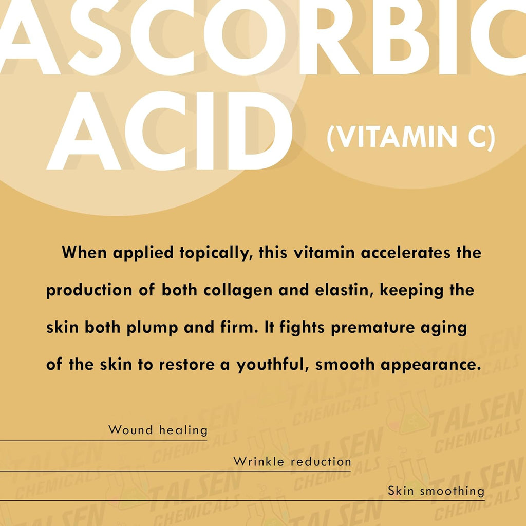 Product Name: Sodium Ascorbate, Vitamin C, L-Ascorbic Acid MF: C6H7NaO6 CAS: 134-03-2 Appearance: Fine White Powder Storage Cool and Dry place Usage: Food grade / Cosmetics grade Ascorbic Acid is also known as a pure form of Vitamin C Pure Ascorbic Acid powder for your compounding of personal care products, and adding to your top formulations and creations. Vitamin C has been cited as a great way to Nourish your skin from oxidation, (cited to even improve skin elasticity by enhancing the production of collagen Many say Vitamin C may also help prevent spots. Used in many formulations as a soothing agent as well. Perfect particle size 80-micron powder for adding to lotions, creams, skincare & after-beauty products, shampoos, and makeup products (e.g. lipsticks) at use levels of 0.2-4 %. Also often used in many drinks & foods Many believe vitamin C was the most important vitamin /nutritive substance you can take! It is a powerful antioxidant. Cited in many journals. Distributed in heat-sealed metallic foil pouches.